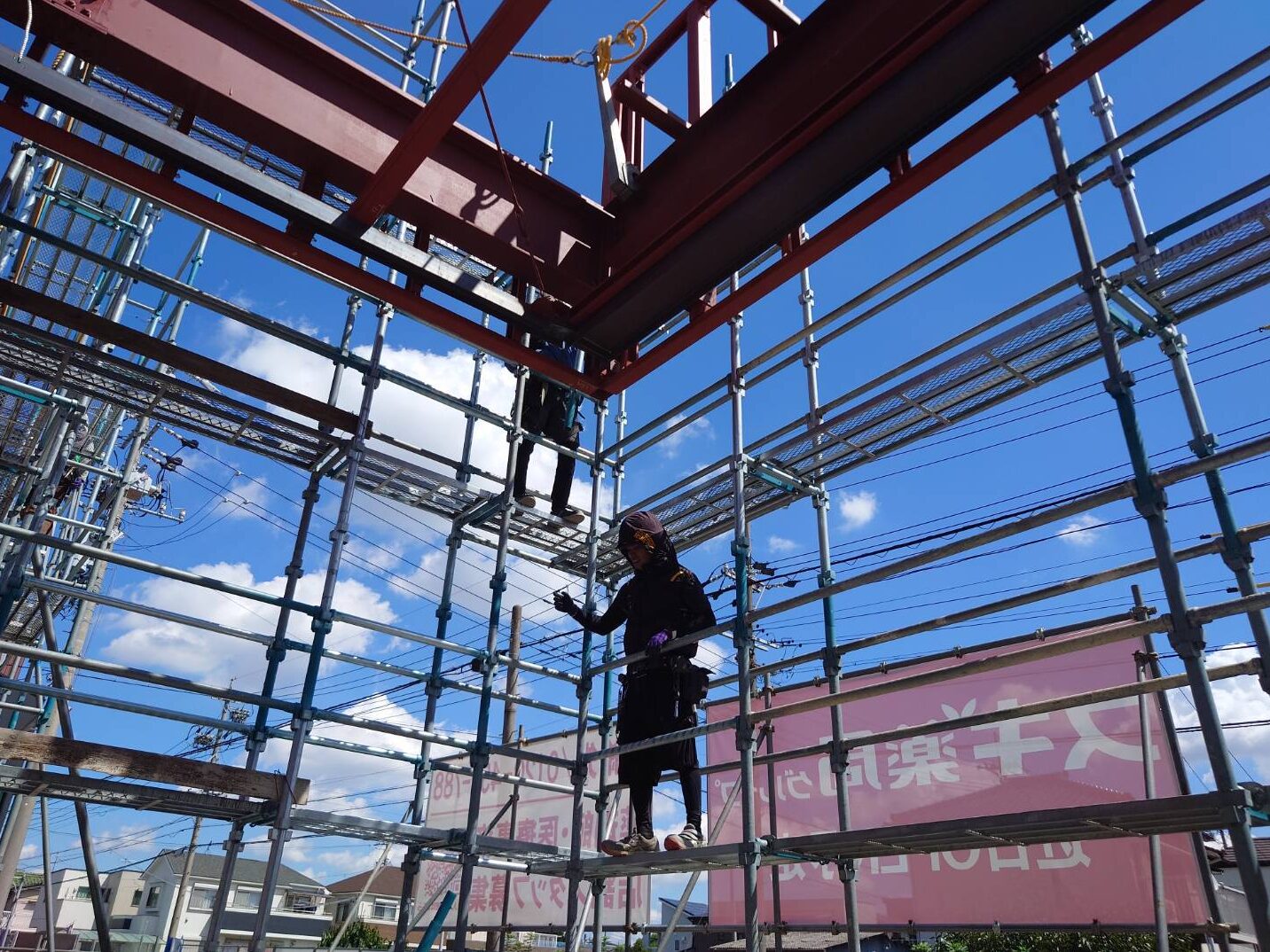 仕事内容 | 鳶職人として足場の組立て、解体作業を行います。 現場で使用する資材の準備、後片付けもリフトを利用し数人で行います。 |